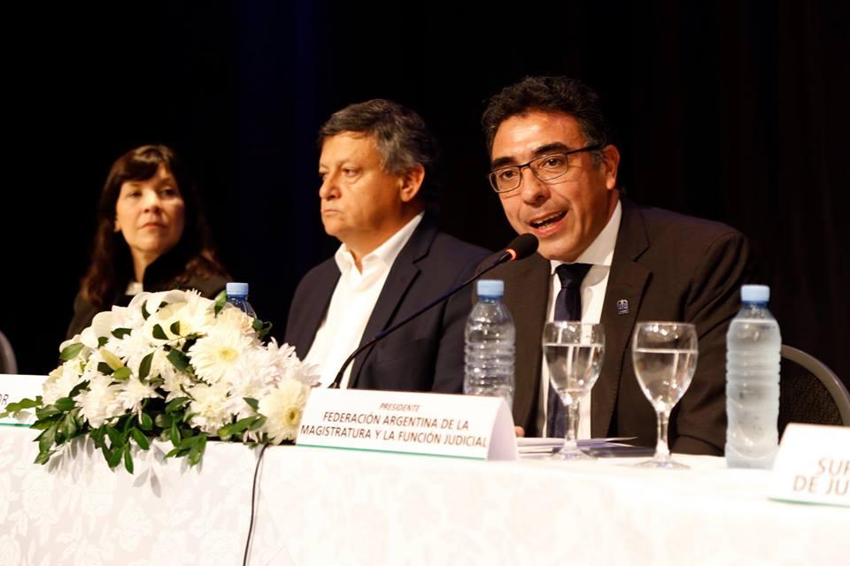 “No podemos soslayar este momento de crisis, y como operadores de los sistemas judiciales nos obliga a estar atentos a lo que está ocurriendo, porque sabemos que en los momentos de dificultados económicas y sociales, los poderes judiciales son interpelados. Y tenemos que decirlo: son interpelados e históricamente han dado respuestas que no se encontraron ni en los libros ni en otras institucionales de la sociedad, sólo voy a mencionar la severa crisis que atravesó nuestro país en el año 2002 en donde se encontró en los tribunales de justicia respuestas a cantidad de necesidades que se presentaban en la ciudadanía”, expresó Ariel Ariza en un discurso muy aplaudido por los presentes.