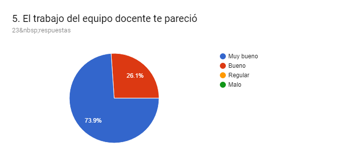 Con respecto al interrogante sobre si el curso brindó otra visión sobre la problemática, un 47,8% respondió mucho, un 30,4% algo y un 21,7% manifestó que ya poseía esa visión. Al consultar sobre el trabajo del equipo de docentes, el 73,9% tuvo una valoración positiva “muy bueno” y el 26,1% “bueno”. “Felicitaciones!!! la calidez humana hace que el curso sea una experiencia placentera de transitar… y de quedarse con ganas de más”; “La modalidad del curso me pareció novedosa e interesante y agradezco a los docentes que estuvieron pendientes de nuestras interacciones, respondiéndolas a la brevedad al igual que las retroalimentaciones de cada semana”; “No colocaría extensión máxima a los trabajos a presentar porque limita la posibilidad de fundamentación como me hubiese gustado”, “Que el tiempo de entrega del trabajo final sea más largo. A veces ocurren imprevistos. Sólo eso. El diseño del curso está muy interesante, organizado y es aplicable a nuestro ámbito de trabajo”, manifestaron algunos participantes.