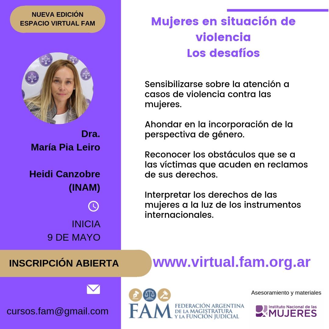 El próximo 9 de mayo inicia una nueva edición del curso de formación on line de la FAM para abordar la problemática de las mujeres en situación de violencia desde una perspectiva de género promoviendo acciones efectivas desde la Justicia.