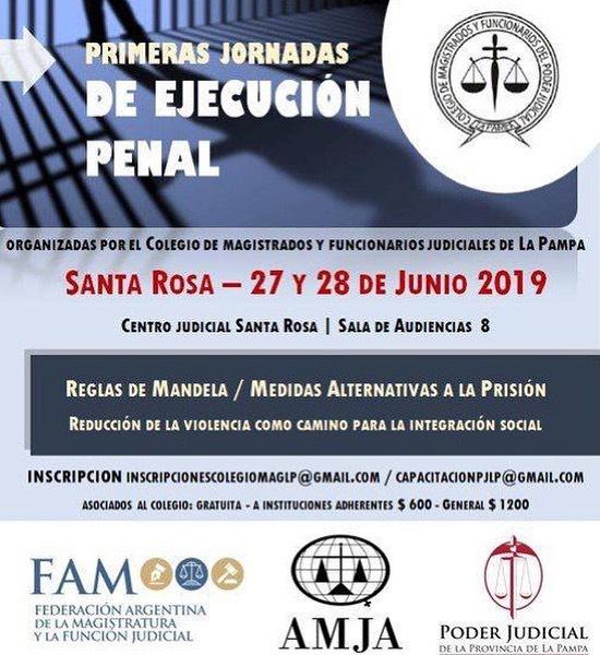 Primeras Jornadas de Ejecución Penal organizadas por el Colegio de Magistrados y Funcionarios de La Pampa, en el Centro Judicial de la ciudad de Santa Rosa los días 27 y 28 de junio.
