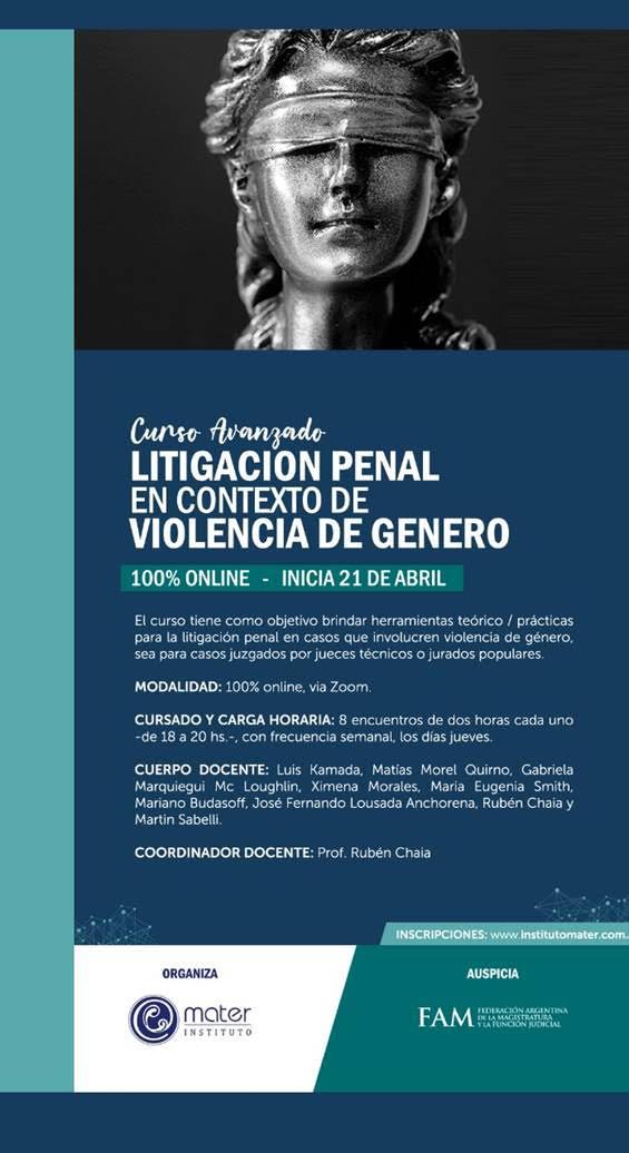 Este curso tiene como objetivo fundamental brindar herramientas teórico / prácticas para la litigación penal en casos que involucren violencia de género para casos juzgados por jueces técnicos o jurados populares.