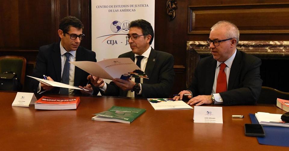 El acto de firma se realizó en el Salón Cedro, del Palacio San Martín en presencia del Presidente del Consejo Directivo, Dr. Daniel Petrone, como testigo de honor, y en el marco de la XXXVIII del Consejo Directivo del Centro de Estudios de Justicia de las Américas que contó con la presencia de Martín Casares, jefe de gabinete del Ministerio de Justicia y Derechos Humanos de la Nación Argentina, Juan José Benítez, subsecretario de Justicia y Política Criminal y Héctor Chayer, coordinador del Programa Justicia 2020