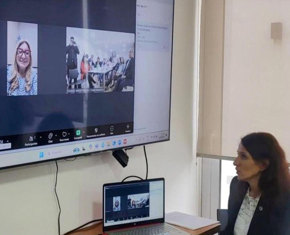 * Encuentro en la sede del Colegio de Magistrados y Funcionarios del Poder Judicial de la Provincia de Buenos Aires (CMFBSAS), donde se desarrolló la reunión de la comisión.